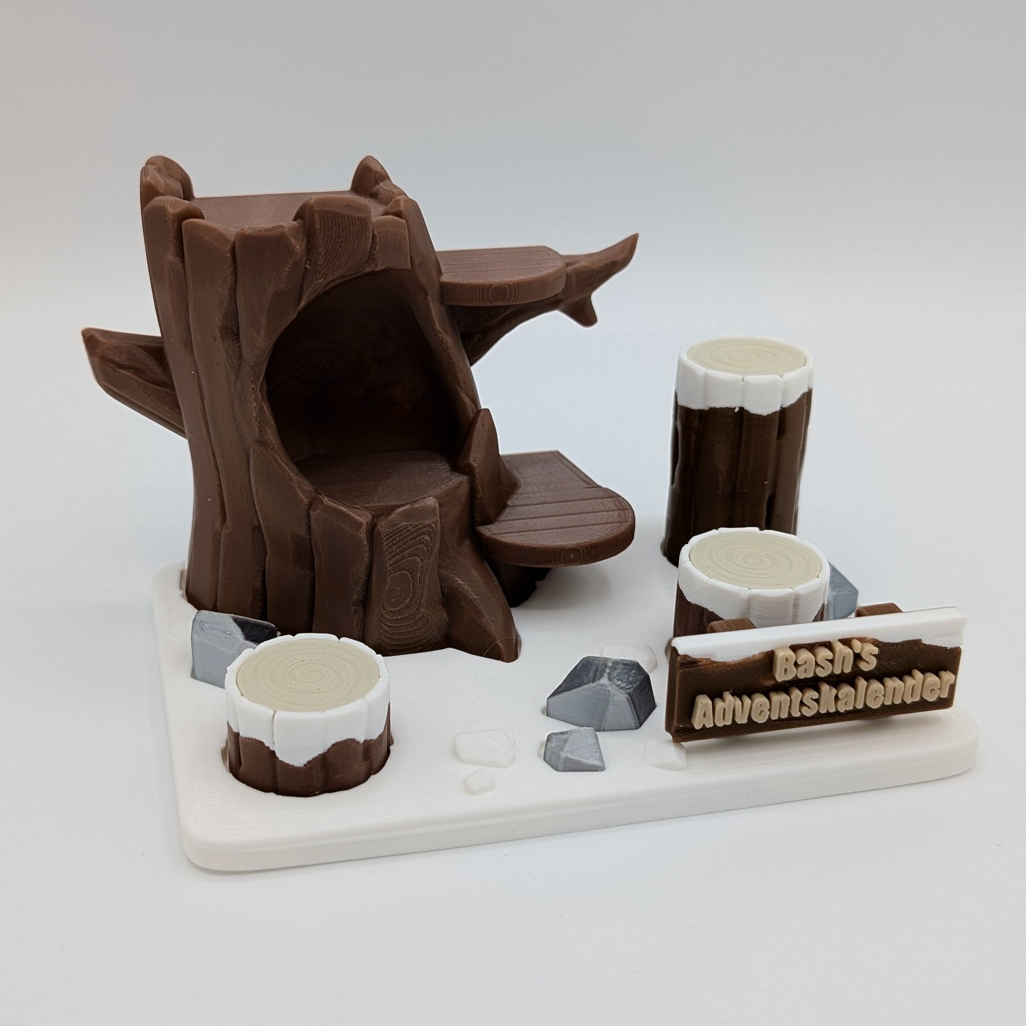 • 🛠️ 3D-gedruckter Adventskalender aus 100 % aus PLA. Davon 90 % aus recyceltem PLA aus Deutschland und 10 % aus PLA Silk.