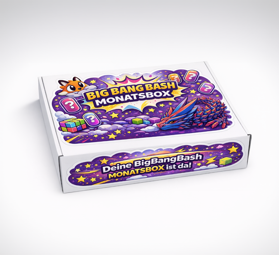 Jetzt vorbestellen und bei der ersten Box am 01. März 26 dabei sein.Mit meiner Bash Box im Abo bekommst du jeden Monat eine neue Überraschungsbox voller Figuren, Fidgets & wildem Stuff direkt aus meinem BigBangBash-Universum. Du weißt nie genau, was drin ist. Aber safe: es ist immer. 🔥